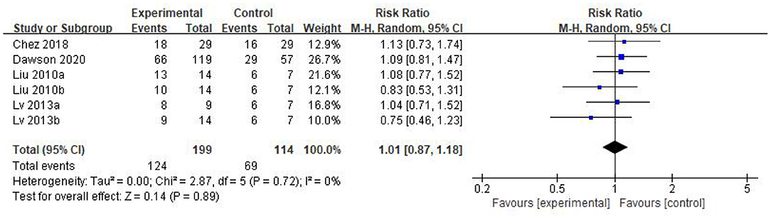結(jié)果:符合納入標(biāo)準(zhǔn)的5項(xiàng)研究被納入當(dāng)前分析。使用康復(fù)治療作為參考標(biāo)準(zhǔn)進(jìn)行薈萃分析。數(shù)據(jù)顯示,干細(xì)胞組的兒童自閉癥評(píng)定量表得分顯著低于對(duì)照組(WMD:-5.96;95%CI [-8.87,-3.06];p?< 0.0001)。Clinical Global Impression評(píng)分綜合效應(yīng)量RR=1.01, 95%CI [0.87, 1.18], Z=0.14 (?p=0.89),Clinical Global Impression的有效率在干細(xì)胞組分別為62%和60%,分別為對(duì)照組。各組不良反應(yīng)發(fā)生事件(RR=1.55;95%CI=0.60~3.98;p=0.36),干細(xì)胞組與對(duì)照組的不良反應(yīng)發(fā)生率無顯著差異。