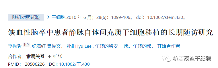 2022年,韓國首爾成均館大學三星醫學中心就其開展的“自體干細胞治療中風隨機對照臨床試驗”STARTING-2 (Stem cell Application Researches and Trials In Neurology)”進行了分析。