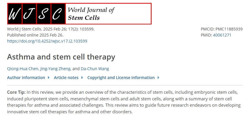 2025年,世界干細(xì)胞雜志發(fā)表了一篇“Asthma and stem cell therapy”(干細(xì)胞治療哮喘)的文章。