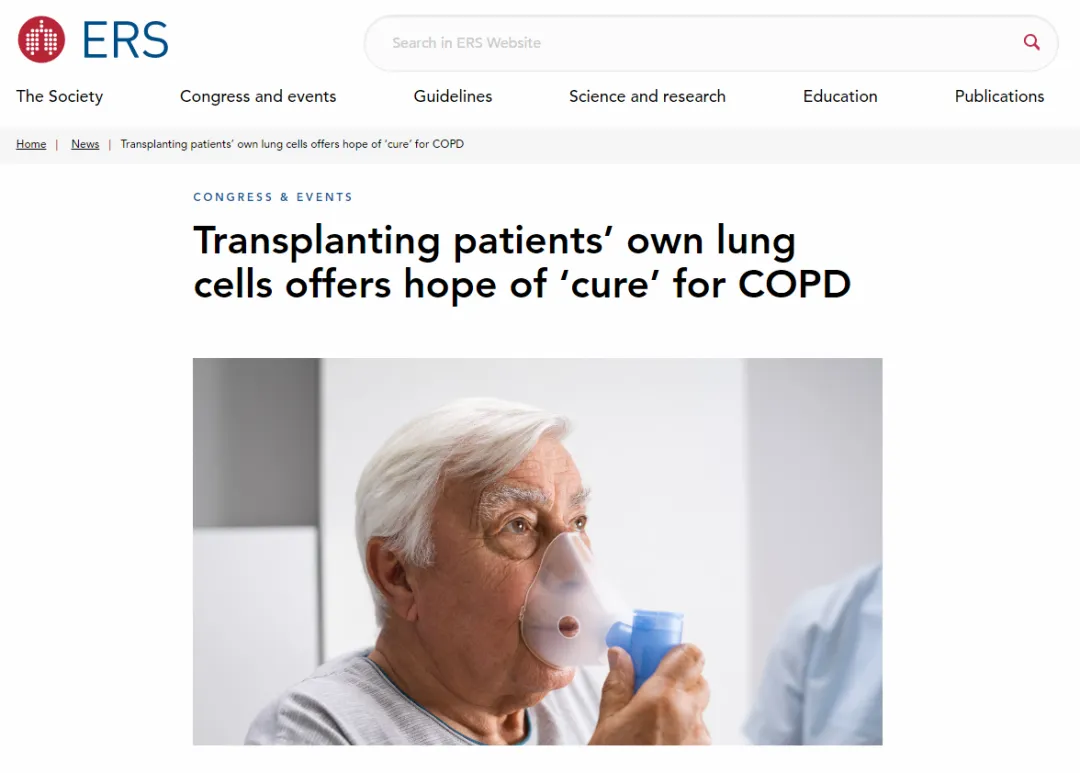 9月27日至10月1日,在全球呼吸領(lǐng)域頂級會議——第35屆歐洲呼吸學(xué)會(European Respiratory Society,ERS)年會上,一項標志著慢性阻塞性肺疾?。–OPD)治療進入再生醫(yī)學(xué)新紀元的突破性臨床研究正式公布。[10]