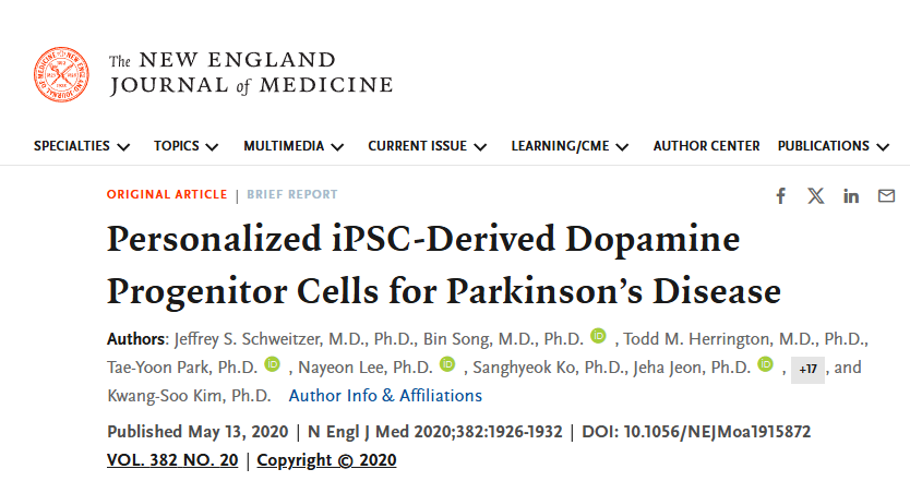 2020年5月13日,麻省總醫(yī)院神經(jīng)外科在國(guó)際期刊《 The New England Journal of Medicine》上發(fā)布了一篇《個(gè)性化 iPSC 衍生的多巴胺祖細(xì)胞用于治療帕金森病》的研究結(jié)果。