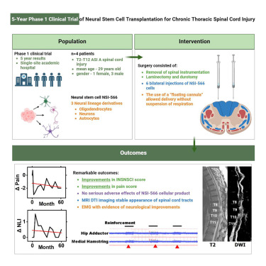 2018年,進行了一項神經干細胞移植治療慢性脊髓損傷的首次人體I期研究,測試了人脊髓源性神經干細胞 (NSI-566) 移植治療慢性脊髓損傷 (SCI) 的可行性和安全性。