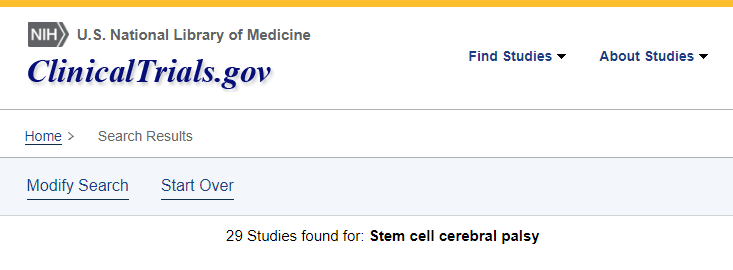 截止2023年3月,在美國國立衛生研究院的最大臨床試驗注冊庫clinicaltrials.gov網站上注冊的有關干細胞治療腦癱的臨床研究項目有29項。其中中國有五項!