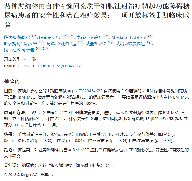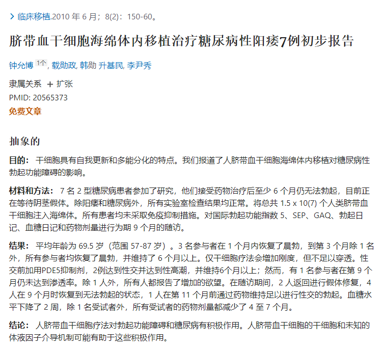 到目前為止,只有四項研究關(guān)注人類ED的干細胞療法。