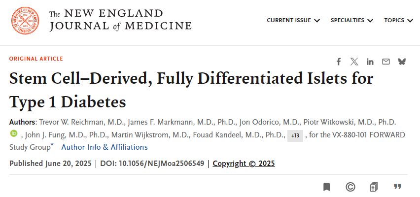 相關閱讀:突破性干細胞療法Zimislecel:83%重癥糖尿病患者停用胰島素超一年