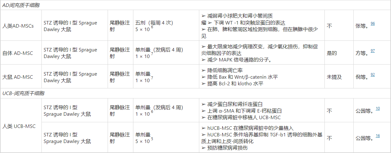 2. 來自骨髓、脂肪組織和臍帶血的間充質干細胞在糖尿病腎病體內和體外都得到了廣泛研究。