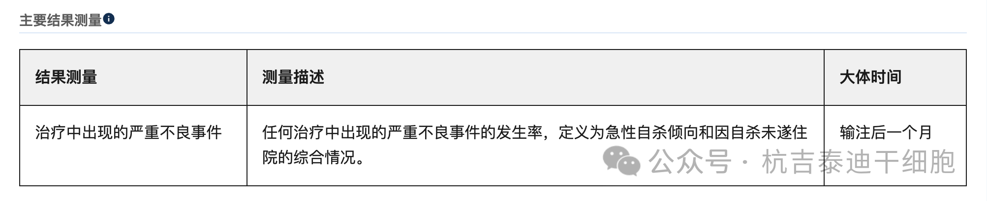 正式名稱:一項(xiàng)I期前瞻性、隨機(jī)、雙盲、安慰劑對照試驗(yàn),旨在評估同種異體人類間充質(zhì)干細(xì)胞輸注與安慰劑對難治性抑郁癥患者的安全性和潛在療效。