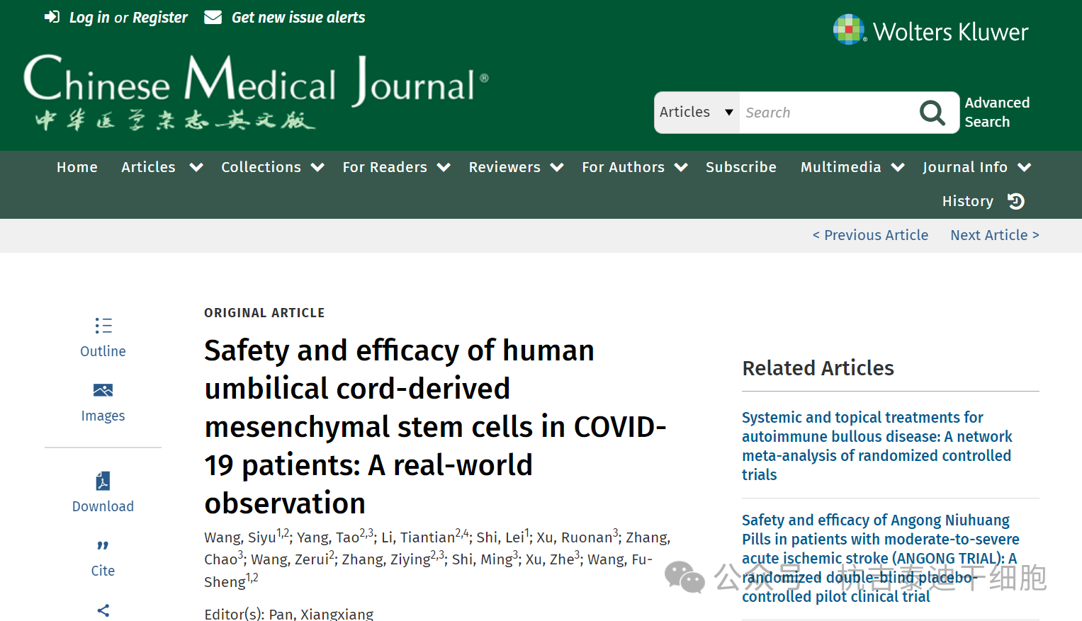 首次通過長(zhǎng)達(dá)3年的前瞻性隨訪評(píng)估了臍帶間充質(zhì)干細(xì)胞(UC-MSCs)治療重癥新冠肺炎(COVID-19)患者的長(zhǎng)期效果。