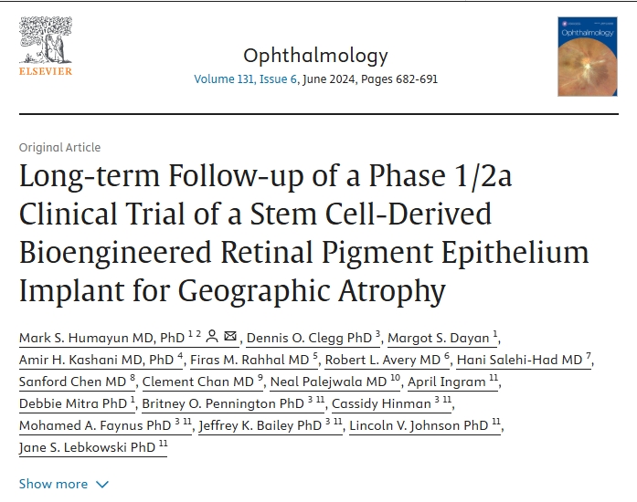 干細胞衍生的生物工程視網膜色素上皮植入物治療地圖狀萎縮的1/2a期臨床試驗的長期隨訪