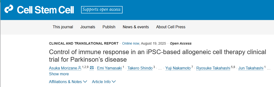 近日,日本京都大學(xué)iPS細(xì)胞研究與應(yīng)用中心臨床應(yīng)用系開展了首個針對帕金森病、使用同種異體iPSCs的人體臨床試驗(jRCT編號:jRCT2090220384)。該項研究發(fā)表在《Cell Stem Cell》上[1]。