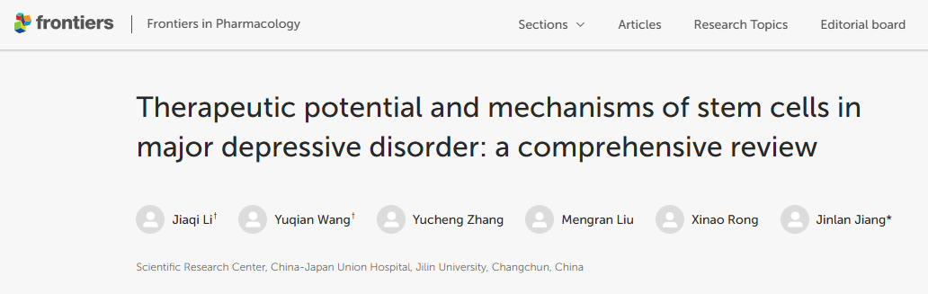 進(jìn)一步支持這一方向的是,2024年11月25日,吉林大學(xué)中日聯(lián)誼醫(yī)院科研中心在《藥理學(xué)前沿》雜志發(fā)表了一篇題為“干細(xì)胞在重度抑郁癥中的治療潛力和機(jī)制:綜合綜述”的研究綜述。