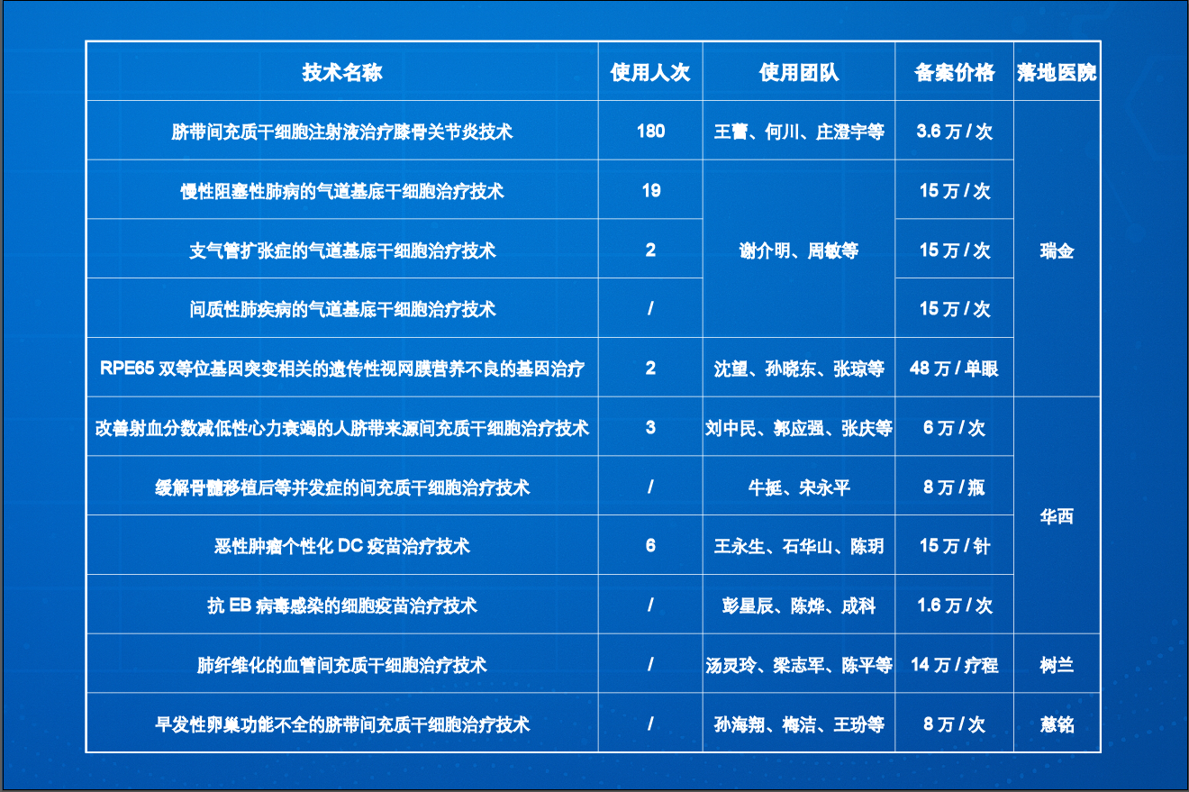 • 膝骨關節炎的臍帶MSC注射液,在瑞金醫院已服務180人次(3.6萬/次);