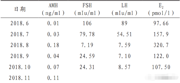 既往病史:11歲開(kāi)始月經(jīng),2009年結(jié)婚后用藥推遲生育3年。2012年停藥后出現(xiàn)閉經(jīng)。經(jīng)檢查,患者的FSH和LH水平偏高,E2水平偏低,被確診為卵巢功能不全。