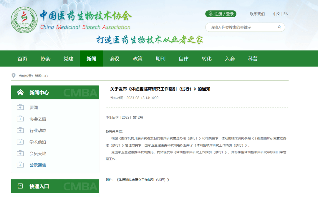 8月18日,中國醫藥生物技術協會發布《體細胞臨床研究工作指引(試行)》,以促進醫療機構研究者發起的體細胞臨床研究健康發展,加強對醫療機構開展體細胞臨床研究工作的指導。(來源:中國醫藥生物技術協會官網)
